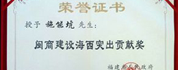 凝聚閩商力量 建設美麗福建施能坑董事長被授予“閩商建設海西突出貢獻獎”【本網訊】6月17日,第四屆世界閩商大會在福州舉行。會上,福建省人民...